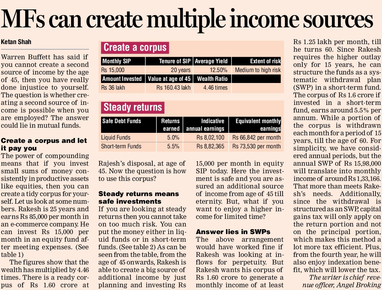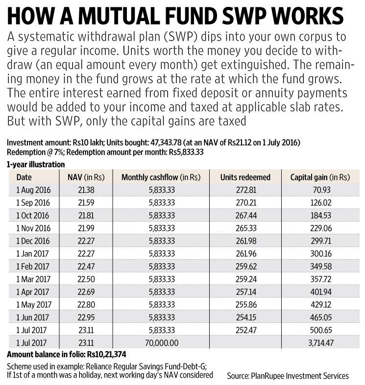 An individual can also invest in a debt of a hybrid mutual funds based on one’s risk appetite. Then for regular income, set up an SWP or systematic withdrawal plan which pays out a specific sum at regular intervals to the investor. If you have risk appetite and ample liquidity, you can also invest a portion in equity funds which will help beat inflation in the long run. Post retirement period need not be a short period. You must prepare for what if you outlive your expected life expectancy.